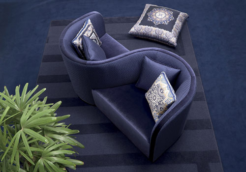 小沙發(fā)Face To Face,藍色絲絨面料,兩個相連的座位營造和諧浪漫的氣氛。