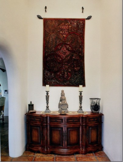 點(diǎn)綴色所指的是室內(nèi)空間內(nèi)小型的裝飾物,易于變化的物體色。如燈具、小靠枕、藝術(shù)品、裝飾畫和其他軟裝飾的色彩。點(diǎn)綴色是室內(nèi)必不可少的色彩,它能很好的打破室內(nèi)空間單調(diào)的環(huán)境。所以,點(diǎn)綴色常選用與背景色形成對(duì)比的色調(diào)。點(diǎn)綴色如果運(yùn)用得當(dāng),可以創(chuàng)造出意想不到的效果。不過,在點(diǎn)綴色常常會(huì)因?yàn)槲锲返捏w積小而被忽視。