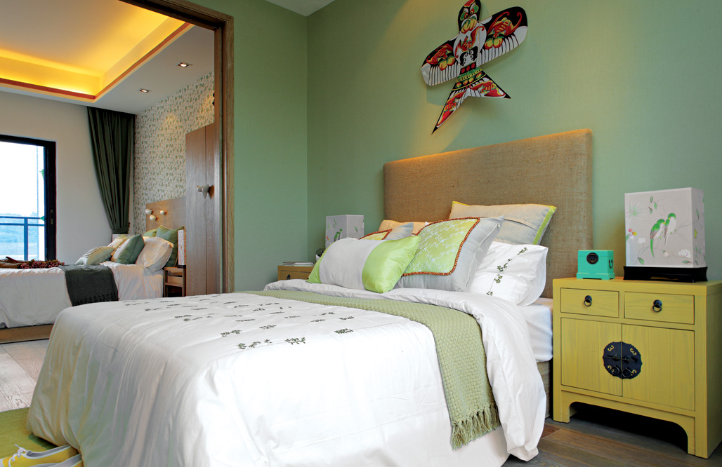 臥室的整體色調(diào)如果用紫色調(diào)的話會讓人有壓抑感,紫色確實(shí)能帶來沉靜、浪漫之感,但如果臥室大面積涂刷成紫色,就會讓整個空間色調(diào)變深、光線變暗,難免讓人感到壓抑,影響人們的心情。另外,濃重的粉紅色和紅色也不宜大面積作為臥室主色調(diào)。因?yàn)檫@種顏色會讓人處于興奮狀態(tài),長久居住會讓人感到煩躁,并出現(xiàn)情緒不穩(wěn)的狀況。如果新婚夫婦已經(jīng)將墻壁刷成了紅色,不妨用白色的裝飾來點(diǎn)綴,以舒緩紅色帶來的視覺沖擊。臥室顏色最好以暖色調(diào)、淺色系為主,淡藍(lán)、鵝黃都是不錯的選擇。