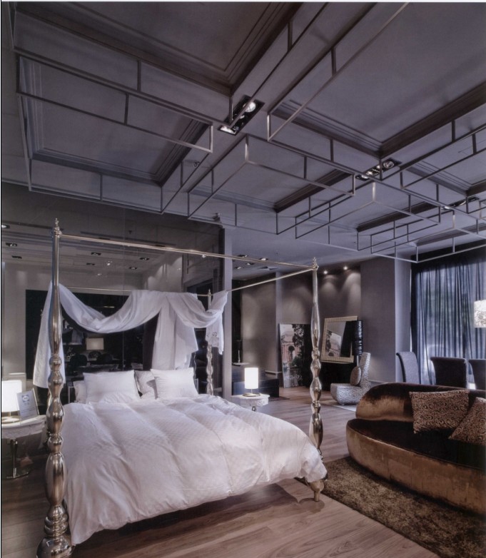 大氣而不俗的風(fēng)格定位,讓本案設(shè)計(jì)必須配合新古典主義的風(fēng)尚和簡約寫意的風(fēng)格。室內(nèi)基本比較簡潔,利用黑白兩個(gè)分區(qū)把新古典主義和現(xiàn)代風(fēng)格區(qū)分開來,深色玻璃讓兩個(gè)空間分開的同時(shí)又相互聯(lián)系。高貴而大氣是本案的核心品質(zhì),室內(nèi)設(shè)計(jì)必須努力做到這一點(diǎn),才能與之相一致。當(dāng)人站在深色的空間時(shí),遠(yuǎn)處淺色的空間也同樣吸引著你的視線。淺色空間里帶有金屬光澤的家具足以吸引人們進(jìn)另一個(gè)空間,這就利用了視覺心理,讓人們的視線在這個(gè)空間彼此交替。