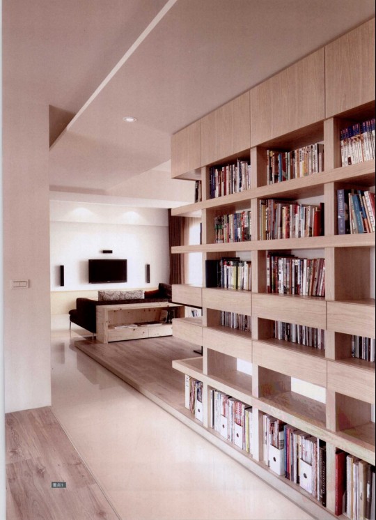 重點1,走道變身L形大面書墻