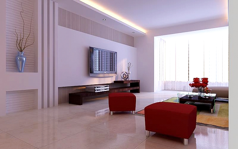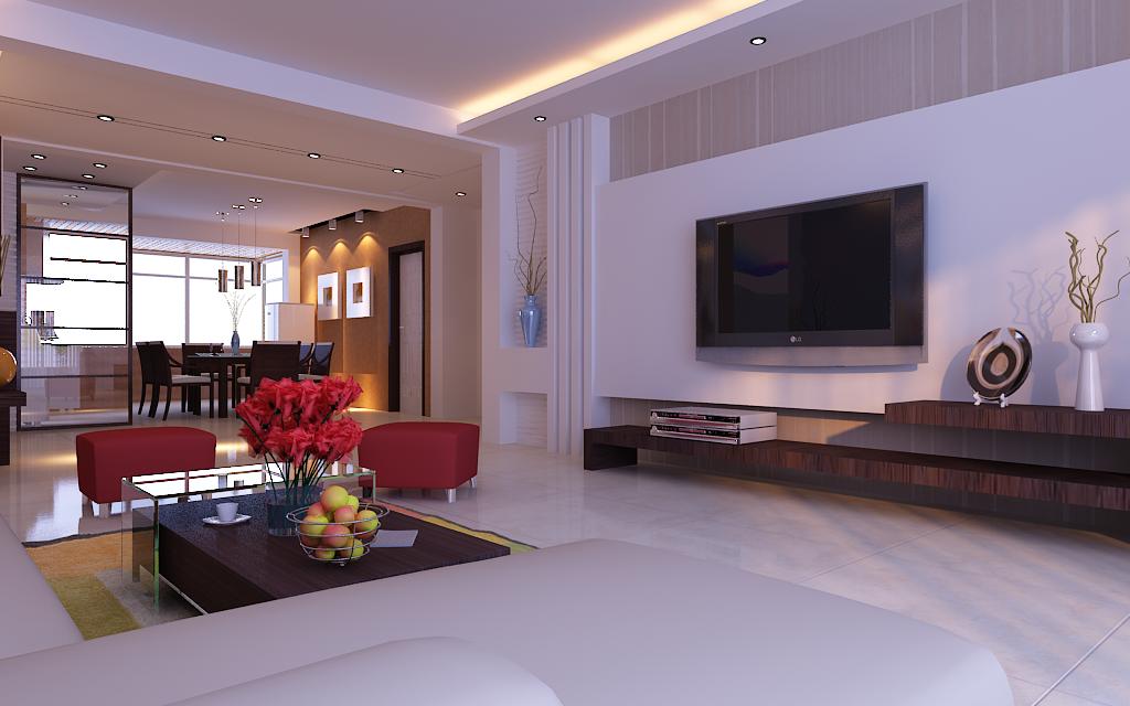 在功能方面,客廳是家品位的象征,體現(xiàn)了主人的品位,有時候朋友或者親戚到家里來做客,這也算是交友娛樂的場合,客廳的電視背景墻采用了簡單的石膏板造型,并做出凹凸的效果,石膏板中間做一個懸掛的臺面,上面放一個有干枝的裝飾瓶做裝飾。貼白色的波浪板做裝飾。電視墻上的豎紋墻紙既簡單又大方。線形的電視柜是密度板基層外貼胡桃木飾面板。客廳的沙發(fā)采用的是紅白相搭配的布藝沙發(fā)。再配上玻璃搭配實木的餐幾,試想想,一家人都坐在布藝的沙發(fā)上聊天,看電視那是一個多么溫馨的場面!客廳的沙發(fā)背景墻只做了簡單的處理,用細木工板貼上黑色的亞克力板,做了一個懸掛的臺面,上面可以放裝飾畫等,一些裝飾品非常實用。