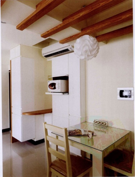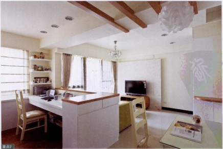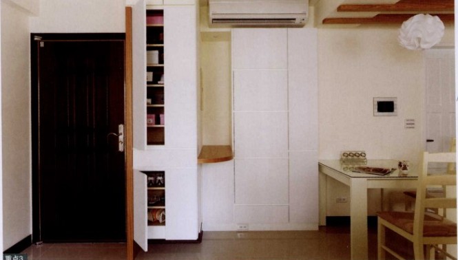 因?yàn)槭切∽≌?,所以屋主?duì)于把握空間的利用率更為在意,特別是收納功能的規(guī)劃很重視。除了收納空間的設(shè)計(jì)外,屋主對(duì)于空間風(fēng)格也有自己的偏好,喜歡明亮、清爽又帶溫馨的空間質(zhì)感。由于室內(nèi)只有50平,除了主臥外,其他空間皆采用開(kāi)放式設(shè)計(jì)。設(shè)計(jì)師順應(yīng)空間特性規(guī)劃收納功能,從入門玄關(guān)鞋柜連接餐柜,到哪臺(tái)連接書桌等等,皆以復(fù)合式功能概念規(guī)劃,屋主最重視的書柜也以雙層設(shè)計(jì)達(dá)到雙倍收納,充分利用了空間。