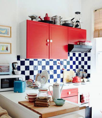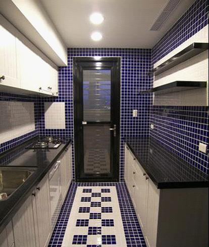 將黑色、藍(lán)色、白色不同顏色的馬賽克拼貼在一起,雜而不亂,還起到美化家居的作用。再將冷色調(diào)與暖色調(diào)想結(jié)合豐富空間層次感。