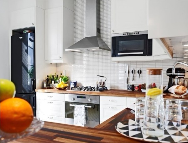 廚房是半開放式的,這個(gè)料理臺(tái)在廚房?jī)?nèi)部就是一個(gè)料理臺(tái),而到餐廳空間,它又可以成為一個(gè)臨時(shí)餐桌了。多用也。新鮮鮮艷的水果與家里隨處可見的綠色水養(yǎng)植物在這個(gè)家里很常見,這也是生活態(tài)度的一種體現(xiàn)哦。