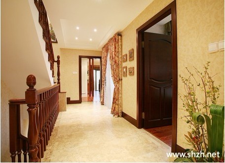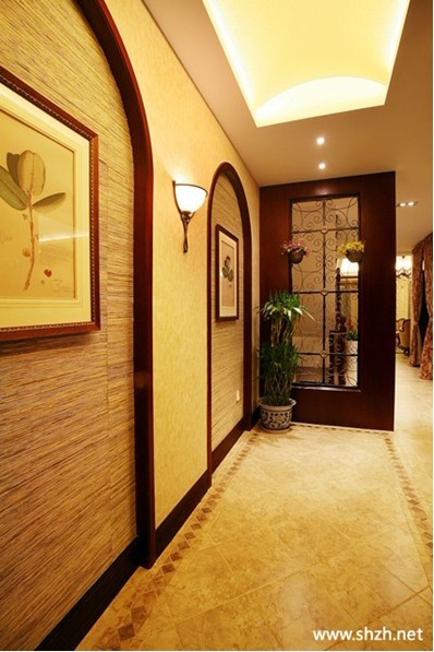 概要: 用花磚延長(zhǎng)視線,這個(gè)走廊樸實(shí)無(wú)華,回歸走廊最本真特質(zhì),即連接室個(gè)各個(gè)空間的通道。質(zhì)地精良的仿古磚,溫暖的色澤讓人看去就非常舒服,同時(shí)可以把人的視線由遠(yuǎn)到近的領(lǐng)到玄關(guān)屏風(fēng)后面的景致?! 〉湫偷默F(xiàn)代中式風(fēng)格,典雅秀麗又透著現(xiàn)代簡(jiǎn)約的干練。這個(gè)樓梯口過(guò)道,是二樓通往三樓的樓梯過(guò)道。二樓的兩個(gè)功能間,都是大的套間,合理的分配是這個(gè)家的重要設(shè)計(jì)。