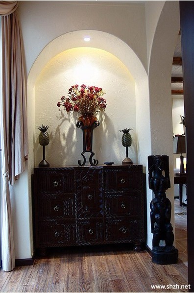 玄關(guān)這個(gè)詞的說(shuō)法如果追溯淵它乃是指佛教的入道之門(mén),但是現(xiàn)在這是我們常見(jiàn)家庭進(jìn)門(mén)的地方。玄關(guān)猶如一個(gè)家的門(mén)面,一個(gè)人出手的名片。它是家給人的第一印象,是精彩佳片的預(yù)告,也是濃縮精華的精彩呈現(xiàn)。玄關(guān)的裝飾就像一篇文章的開(kāi)頭,可以平平敘述,漸入佳境;也可以迂回曲折,予人遐想。它寫(xiě)景,它抒情,它可以是我們想要告訴他人的任何東西,也可能什么都不是,只是一個(gè)漂亮的開(kāi)端與結(jié)束。