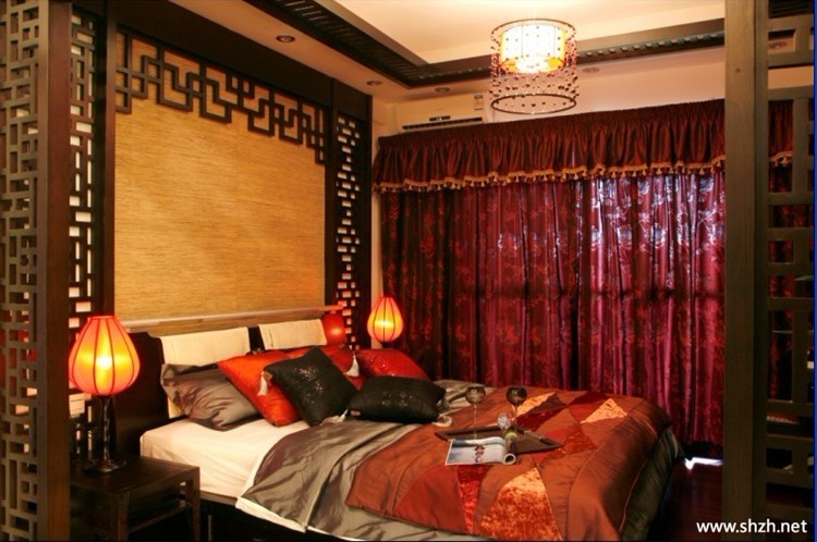 無疑,這個紅色的中式臥室是優(yōu)雅的,中式的燈具,外形優(yōu)雅又做到簡約。明黃色的背景,明快靚麗。整個空間的暖色推薦精巧絕妙。它們似乎是屬于同一色系,運用在不同的部位,層次分明,優(yōu)雅得體。