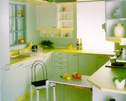 首先,要注重廚房動作路線也就是“動線”的設(shè)計。有些廚房把油鹽醬醋的瓶瓶罐罐放在灶頭上方壁櫥里,每次烹調(diào)都得拿上拿下;有些水槽離灶頭較遠(yuǎn),洗鍋盛水走來走去,手忙腳亂,實(shí)際上做的是“無用功”。一般應(yīng)先確定煤氣灶、水槽、冰箱三者位置,再按廚房結(jié)構(gòu)面積和自己習(xí)慣的燒菜程序,安排常用器材位置。