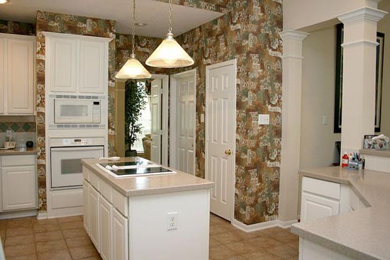 在衛(wèi)浴空間使用壁紙也要遵循“干濕”分區(qū)的原則。即使是防水壁紙也要避免直接被水沖淋或浸泡,因此只能用在“干區(qū)”(包括設在干區(qū)的洗衣間),經常處在潮濕狀態(tài)的“濕區(qū)”則不適于使用任何壁紙。為了解決這個問題,“干濕”分區(qū)的衛(wèi)浴可以將壁紙與馬賽克、瓷磚等墻材配搭使用。目前壁紙市場中的“水中花”防水壁紙是專門為衛(wèi)浴空間設計的,使用紙基PVC為基材,表面PVC層較厚,所以防水性能極佳,遇水也不會吸收水分,反而會呈現出透明水滴沾滿墻面的清涼畫面。該壁紙還具有抗霉變、防掉色等功能,避免了壁紙因長期處于潮濕環(huán)境脫色而變得“不美”。清理起來更是異常簡便,可以用質地柔軟的干布直接擦拭。