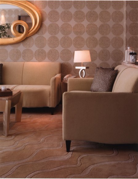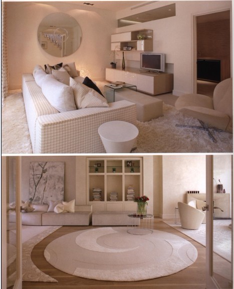 室內(nèi)的裝修是比較簡單的,背景色十分素凈,但是很溫暖。溫馨彌漫,不管是沙發(fā)的材質(zhì)還是地毯的色澤,還是裝飾畫的選擇都以這個主旨在進行。圓形的大塊地毯與半月型的地毯相稱,明明不是同一個系列卻做到了相輔相成。而它的圖案與裝飾畫的相呼應(yīng)。