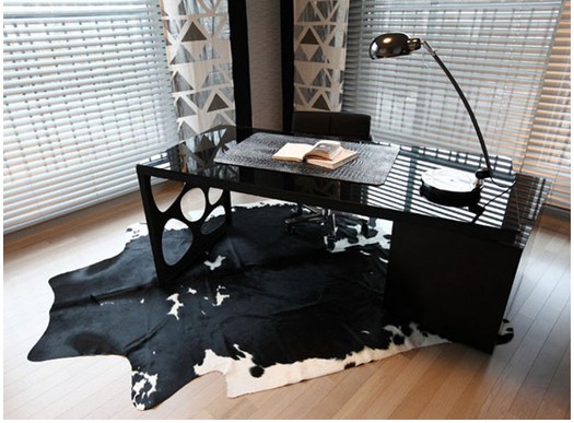乳?;y地毯的黑白色和全屋裝修主題保持一致,淡咖啡色的地板為黑白陪添加了中庸的元素。書桌腳靠窗一面的鏤空設(shè)計(jì),不僅節(jié)省了家居生產(chǎn)的成本,弧形線條還能和室內(nèi)的直線,三角形線條相配合,給人以視覺的沖擊力。