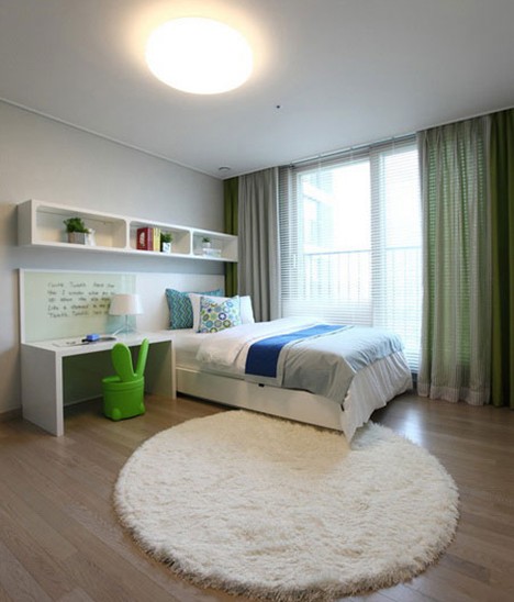 兒童房設(shè)計(jì)可謂是真正的清新淡雅,室內(nèi)色彩的點(diǎn)綴可增強(qiáng)兒童的想象力。充足的室內(nèi)光線是保證兒童眼部健康的首要元素,采光良好的落地玻璃窗能很好的吸取陽光,而跳眼的綠色加入是為了保護(hù)兒童的視力,可以舒緩兒童眼部的壓力。藍(lán)色的加入調(diào)和室內(nèi)色彩,增加小清新元素。