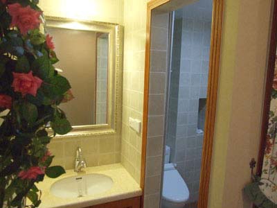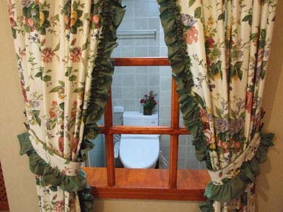 看清楚了,原來(lái)這里面是一個(gè)衛(wèi)生間,據(jù)主人講,原來(lái)這里是一面墻,光線(xiàn)和結(jié)構(gòu)都非常不好,于是充分發(fā)揮他的聰明才智,又是請(qǐng)教師傅,又是上網(wǎng)查資料,方案做了一個(gè)又一個(gè),最后決定把墻做成了窗欞的樣子,這樣既好看又光線(xiàn)通透,這實(shí)在是太有創(chuàng)意了,廣大正奮戰(zhàn)的裝修一線(xiàn)的網(wǎng)友不妨偷學(xué)這一招,絕對(duì)有意想不到的效果。