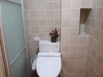 衛(wèi)浴間內(nèi)部,顯得非常簡(jiǎn)潔,主要是空間不大,放不下更多的東西。不過(guò),主人還是沒(méi)有忘記在馬桶上面放上一盆綠色植物,時(shí)刻不忘與大自然親密接觸。