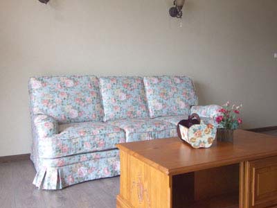 富有鄉(xiāng)村氣息的沙發(fā)獨(dú)自占據(jù)一個(gè)角落。
