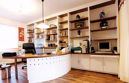 和充滿商機(jī)的辦公室相比,個人工作室顯得更加放松、簡潔、隨意,其最大的特點(diǎn),就是能充分發(fā)揮辦公自動化的靈活性。在有限的空間內(nèi),將電腦、打印機(jī)、復(fù)印機(jī)、傳真機(jī)等辦公設(shè)備進(jìn)行合理的布局,結(jié)合電腦桌的合理性與靈活性進(jìn)行巧妙擺放,以方便自己維護(hù)藏書、辦公、閱讀等興趣愛好。對于積累資料較多的人來說,多功能的暗格、活動拉板十分實(shí)用,應(yīng)該充分利用各個角落和空當(dāng),在里面安置分門別類的書籍與資料,工作的時候就可以信手拈來了。