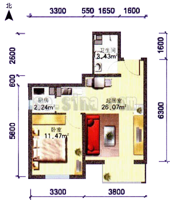 2.廚房面積較小,不好布置與活動(dòng);廚房與洗手間的安排不合理,如果能對(duì)調(diào),能達(dá)到更合理的效果。