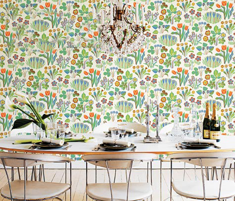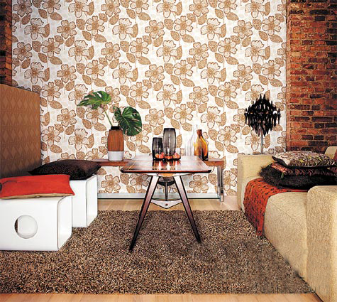 在壁紙展示廳中,鮮艷炫目的圖案與花朵最搶眼,有些花朵圖案逼真、色彩濃烈,遠觀有呼之欲出的感覺。這種壁紙可以降低房間的拘束感,適合格局較為平淡無奇的房間。