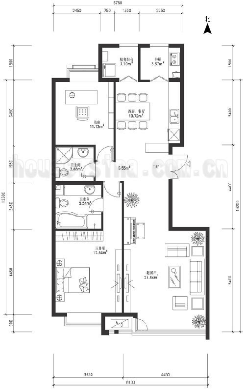 2、臥室區(qū)和書(shū)房區(qū),與活動(dòng)區(qū)動(dòng)靜分離互不干擾,且保持活動(dòng)順暢。