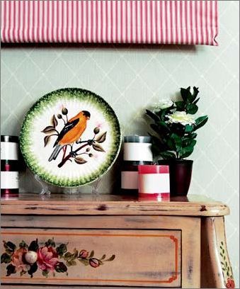 窗下的空間雖只是家中小小一隅,細心裝扮,也能演繹出不同風景。生活源于細節(jié),而細節(jié)源于用心。布置窗的時候,不僅要注意色彩和諧,也要講究風格的統(tǒng)一。梳妝臺上的手繪玫瑰圖案跟粉色條紋棉布窗簾在色彩上形成和諧呼應,手繪瓷盤典雅而不失活潑,為點睛之筆,烘托出一派英式鄉(xiāng)村風格,與室內(nèi)整體格調(diào)完美統(tǒng)一。餐廳的窗下,最適合布置成這樣隨意溫馨的小景。