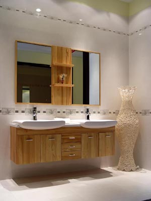 無論是在臺盆表面還是在浴室柜的臺面上,放過多的清潔衛(wèi)生用品都會顯得雜亂無章,而且容易碰倒,因此不妨在面盆上部貼墻的位置釘上10厘米寬的隔板,只要能放得下化妝瓶、刷子、洗漱杯等便可以了。隔板高度以不妨礙使用水龍頭為宜,木板、玻璃等材料都是不錯的選擇。