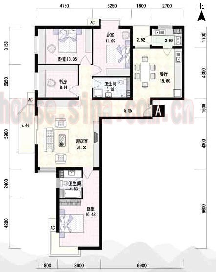 4、客廳有通往陽臺(tái)的推拉門,易造成室外冷風(fēng)進(jìn)入,不適用于北方家居要求
