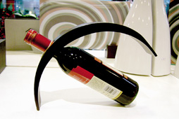 在由澳大利亞設(shè)計(jì)師Stevenrodis為首席設(shè)計(jì)師的家飾用品專(zhuān)賣(mài)店平米家居里,記者就發(fā)現(xiàn)了許多匠心獨(dú)具的新穎廚房家飾品。酒瓶用一個(gè)弧形的木制瓶托斜撐著,酒瓶與瓶托呈現(xiàn)出獨(dú)特的造型美。幾個(gè)面碗和水杯兩邊出現(xiàn)了古希臘戰(zhàn)士頭盔造型的邊兒,既是裝飾,又有防止?fàn)C手的功能。另一種面碗是木制的,碗邊上設(shè)計(jì)了擺放筷子的凹邊,正好放一雙筷子,特別適合單身貴族和青年情侶偶爾在家給自己做點(diǎn)面條時(shí)用。當(dāng)然了,造型如此時(shí)尚的碗筷不吃飯時(shí)放在桌上也可以做裝飾品。另一個(gè)遠(yuǎn)看像花瓶的容器,近看才發(fā)現(xiàn),原來(lái)是一個(gè)不銹鋼架子上面疊放著同樣式和同大小的咖啡杯,下面疊放著和咖啡杯相配的杯墊。這樣的設(shè)計(jì)既節(jié)省空間,造型又獨(dú)特,還可以做裝飾品,真是集功能性、裝飾性與藝術(shù)性于一體的設(shè)計(jì)作品。