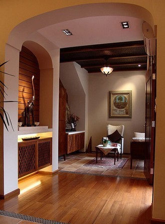 2、吸取了其風(fēng)格的“形神”特征,在設(shè)計上追求空間變化的連續(xù)性和形體變化的層次感,室內(nèi)多采用帶有圖案的壁紙、地毯、窗簾、床罩、帳幔及古典裝飾畫,體現(xiàn)華麗的風(fēng)格。
