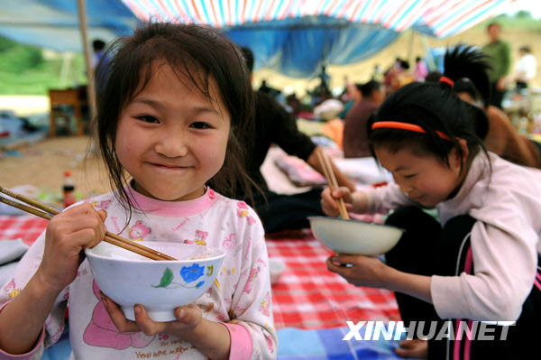 這是2008年5月13日,在陜西省寧強(qiáng)縣青木川鎮(zhèn)輔仁中學(xué)避震點(diǎn),魏玉潔在吃午餐。