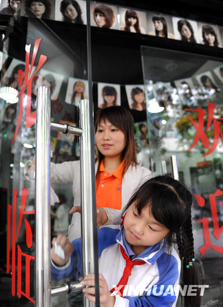 3月25日,放學(xué)后的魏玉潔幫父母打掃店里的衛(wèi)生