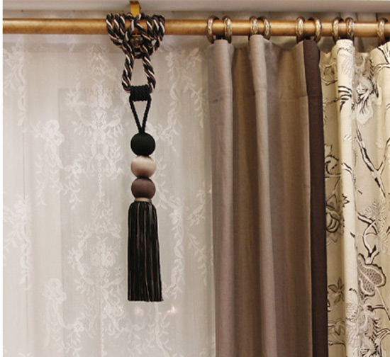 窗簾可以添加的配件很多,比如花邊、垂墜、布帶、鉛線、掛鉤、掛球、綁帶……從實用角度講,除了像布帶這樣的必須要有的,還有像垂墜或鉛線那樣有所選擇的配件,其他的配件很多都是華而不實累贅,而且也是窗簾商家主要的利潤點所在。所以,可以考慮適當(dāng)省略。