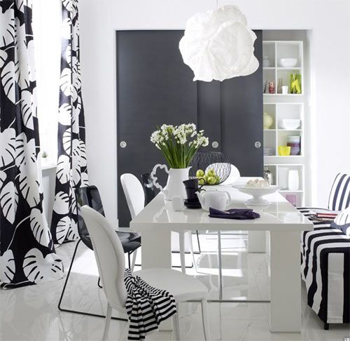 白色的簡單純凈怎樣演譯出經(jīng)曲風(fēng)范?別擔(dān)心,MIX點(diǎn)黑色如何?黑白色的經(jīng)曲搭配是時(shí)尚辦永不過時(shí)的話題。要注意的是:黑色一定要局部適量應(yīng)用,才不會(huì)搶了白色餐桌的風(fēng)頭。
