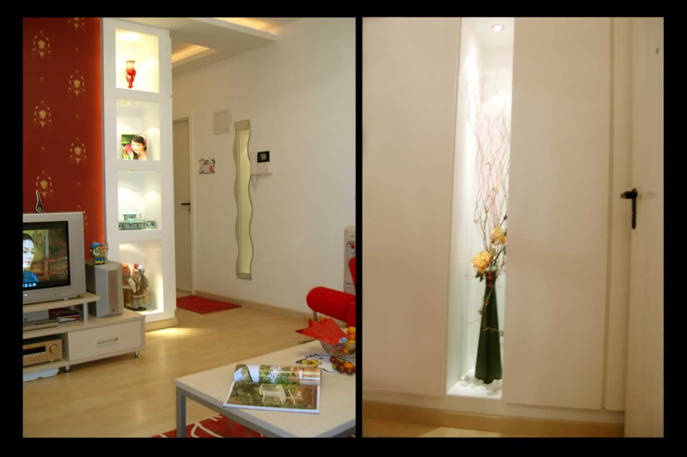 在玄關(guān)內(nèi)可以應(yīng)用的燈具很多,主要有熒光燈,吸頂燈,射燈,壁燈等。嵌壁型朝天燈與巢形壁燈能夠是燈光上揚,增加玄關(guān)的層次感。在少大的空白墻面上安裝獨特的壁燈,既有裝飾作用又可照明。很多小型地?zé)艨梢允构饩€向上方散射,在不刺眼的情況下可以增加整個玄關(guān)的亮度,還能避免低矮處形成死角?,F(xiàn)在比較流行吸頂熒光燈或造型別致的壁燈,以保證玄關(guān)內(nèi)有較高的亮度,也使環(huán)境空間閑的高雅一些,如果玄關(guān)內(nèi)有足夠的空間擺放小桌子,可以使用1 ~2 盞桌燈,如果在玄關(guān)的墻壁上掛幾張照片,圖片或畫作,畫上加兩盞小燈,可使玄關(guān)更引人注目。