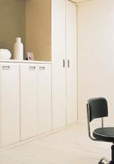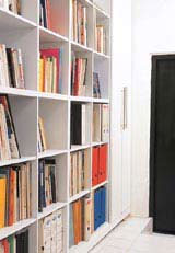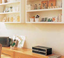 如果有大量的CD和書籍、錄像帶等物品,最好事先根據(jù)這些物品的具體形狀和數(shù)量,來制定適當(dāng)?shù)目臻g規(guī)模。定做尺寸相當(dāng)?shù)臄R板或收納柜,可以避免空間的浪費(fèi)。而且,整理起來有條不紊,視覺上也整潔許多。