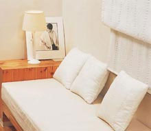 在客廳里可以試著放置沒有靠背的沙發(fā)。將沙發(fā)做成長而窄的形狀,然后放幾個(gè)靠墊當(dāng)成靠背就可以了。這種沒有靠背的沙發(fā),可以使房間面積感增大,而且也有多種不同的用途,是個(gè)不錯(cuò)的創(chuàng)意。