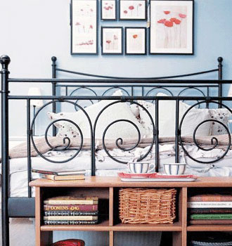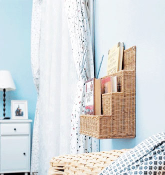 床頭兩邊的墻上,可以各放置一個儲物盒,當(dāng)然要小型的,可以是藤質(zhì)的或者布藝的,可以放置報刊書籍,也可以放置眼鏡、筆等小件物品,這樣一個小型的休閑閱讀空間就出現(xiàn)了。