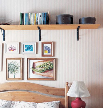 墻壁的上方可以用擱板,放置一些精美的擺設(shè)或者小型的花卉盆景等,下面可以掛照片或者裝飾畫等,讓墻壁不再單調(diào),而變成一處風(fēng)景。