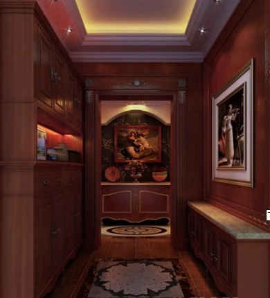 過道印花地毯搭配歐式風(fēng)情的壁畫