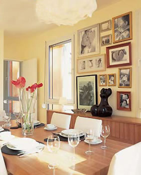 每一張照片都有一個故事。周末的時候,一家人圍坐在餐桌旁,邊吃飯邊話說當(dāng)年,合著窗外暖暖的陽光,其樂融融。幾乎貼滿墻壁的照片,沒有什么規(guī)則地排列著,花瓶、餐具、桌椅等物品雖然很多,看似復(fù)雜,卻在顏色與形式上統(tǒng)一成對美好歲月的回憶和感謝。