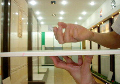 再就是把這些磚一塊挨一塊豎起來,比較磚的尺寸是否一致,小磚偏差允許在正負(fù)1毫米,大磚允許在正負(fù)2毫米。