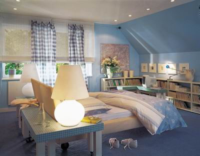 應(yīng)盡量保證屋宅內(nèi)的安靜;采光不宜太強(qiáng),應(yīng)以柔和為主;顏色應(yīng)以淡雅柔和為主,如象牙白、淡藍(lán)等色系; 的正前方不可放電視,因?yàn)榭赡軙?huì)有損健康。