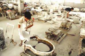 將調(diào)制好的石膏漿倒入樹(shù)脂模中,翻制注漿成型用的石膏模具。