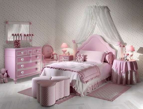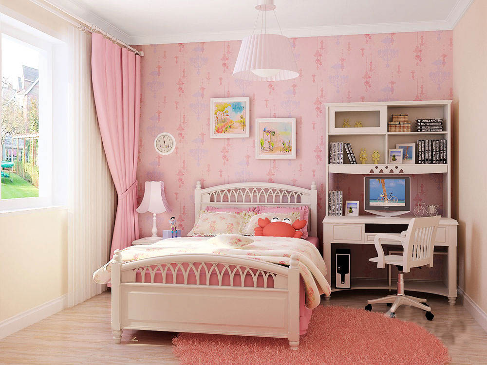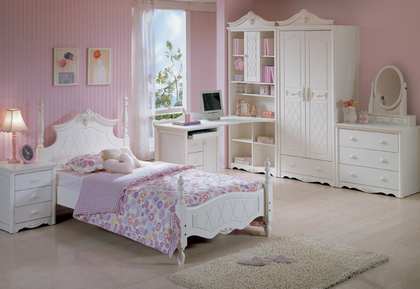 粉色墻體配上白色歐式風格的兒童臥室家具,顯得氣質(zhì)又大方。