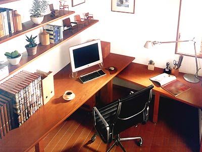 書(shū)房是陶冶情操、修身養(yǎng)性的幽谷,一般陳設(shè)有寫(xiě)字臺(tái)、電腦操作臺(tái)、書(shū)柜、坐椅等。寫(xiě)字臺(tái)和坐椅形狀要精心設(shè)計(jì),做到坐姿合理舒適,操作方便自然。