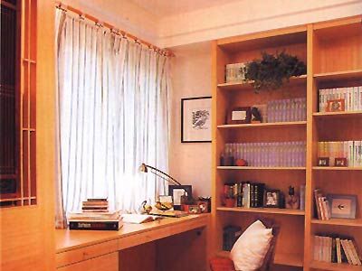 書(shū)房的家具除了要有書(shū)櫥、書(shū)桌、椅子外,兼會(huì)客用的書(shū)房還可配備沙發(fā)茶幾等。書(shū)櫥應(yīng)靠近書(shū)桌以存取方便,書(shū)櫥中可留出一些空格來(lái)放置一些工藝品以活躍書(shū)房的氣氛,書(shū)桌應(yīng)置于窗前或窗戶(hù)右側(cè),以保證看書(shū)、工作時(shí)有足夠的光線,并可避免在桌面上留下陰影。書(shū)桌上的臺(tái)燈應(yīng)靈活、可調(diào),以確保光線的角度、亮度,還可適當(dāng)布置一些盆景、字畫(huà)以體現(xiàn)書(shū)房的文化氛圍。