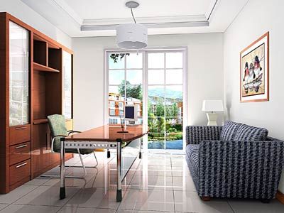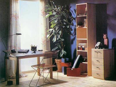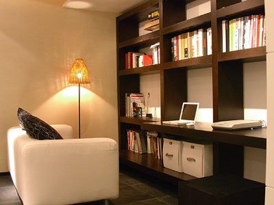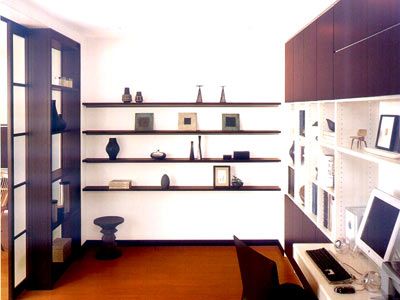 面積充裕的居室中,可以獨(dú)立布置一間書(shū)房,面積較小的居室可以辟出一個(gè)區(qū)域作為學(xué)習(xí)和工作的地方,可用書(shū)櫥隔斷,也可用柜子、布幔等隔開(kāi)。