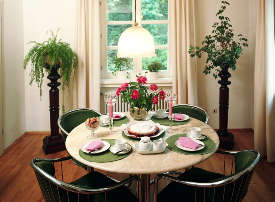餐廳的布置及設(shè)計都選用相當簡潔的手法,使空間感更強。三口之家選用圓型餐桌,可以有效地建立起一種溫情暖意的家庭氛圍。