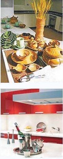 此外,一些專用于廚房的裝飾品也很有趣。比如,冰箱上吸附著磁性小裝飾,可以來(lái)點(diǎn)卡通風(fēng)格,增加童趣。還有很多墊杯墊碗墊鍋的小墊子,圓的、方的、草編的、木制的,常在不經(jīng)意的放置中飾出景致來(lái)。如果特別用心思,還可以在廚房里設(shè)計(jì)一個(gè)酒柜,放幾瓶酒,讓射燈的光照在造型或華美或古樸的酒瓶上,折射出濃濃的酒色,使得裝飾性與實(shí)用性得到完美的結(jié)合。