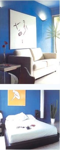 具有天生設(shè)計(jì)才能的DavittChin用他的有限預(yù)算,做了大量創(chuàng)新性的工作。他親自動(dòng)手粉刷了公寓,式樣奇妙的家具也是他親自設(shè)計(jì)的。強(qiáng)烈的藍(lán)綠色和簡(jiǎn)潔的線條賦予了這個(gè)公寓的客廳強(qiáng)烈的個(gè)性。在藍(lán)綠色的墻和天花板下,白色并不引人注目,卻強(qiáng)調(diào)了門和家具的方位。為了避免可能產(chǎn)生的單調(diào),DavittChin從市場(chǎng)精心挑選了兩個(gè)蝴蝶椅,深橙色和黑色的椅子與四周形成了鮮明的對(duì)比。此外,從簡(jiǎn)約的理念出發(fā),他從燈具店購來一個(gè)曲線優(yōu)美的落地?zé)?,與環(huán)境相得益彰。最終營(yíng)造出了他自己的格調(diào)。